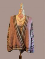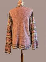 Diese weich fallende Häkeljacke ist ein echtes Unikat: gearbeitet aus dem edlen, leicht flauschigen Garn per Fortuna von Lana Grossa, besticht sie durch ihre harmonischen Farbverläufe in Rosé, Braun und Creme. Der kastige Schnitt und das raffinierte Zickzack-Muster machen sie zu einem gemütlich-eleganten Begleiter. Größe 42. Handgefertigt aus 74 % Baumwolle und 26 % recyceltem Polyamid.