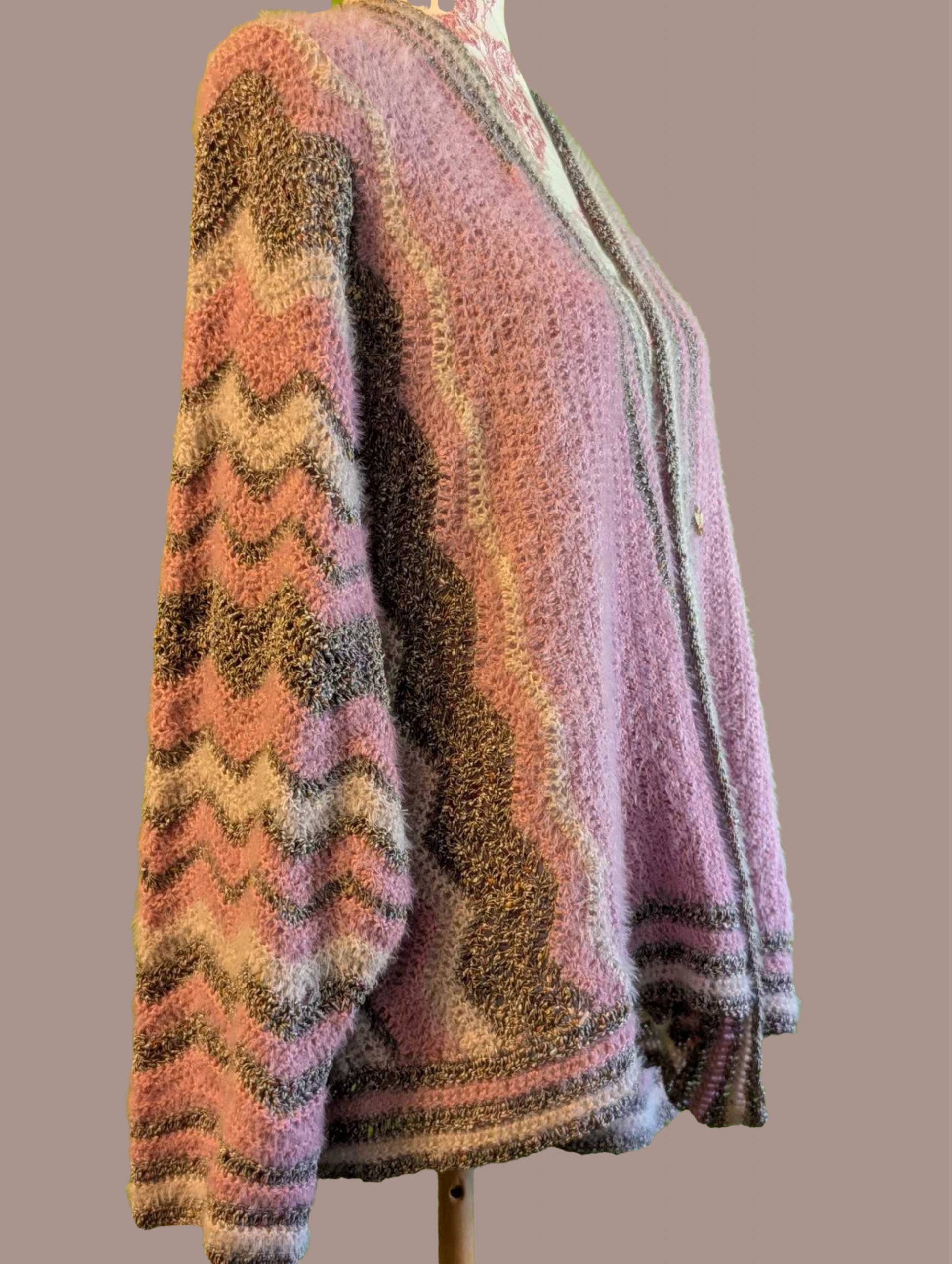 Flauschige Häkeljacke im Farbverlauf mit Zick-Zack-Muster