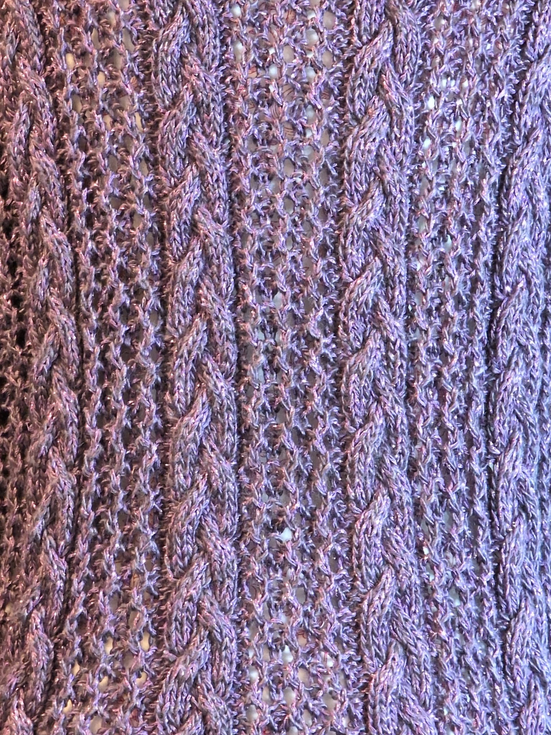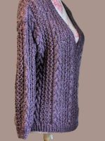 Zopfstrickpullover in Lavendel mit Glanz – Lana Grossa Mulberry Lace & Brillino, Größe 38–40