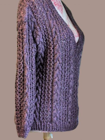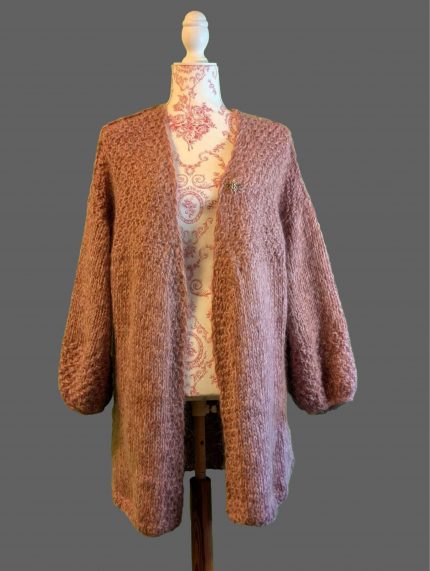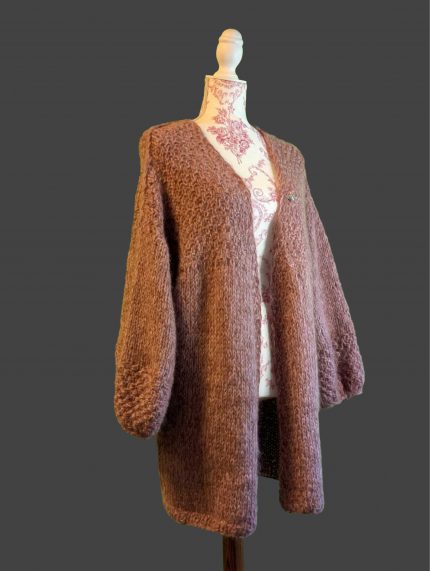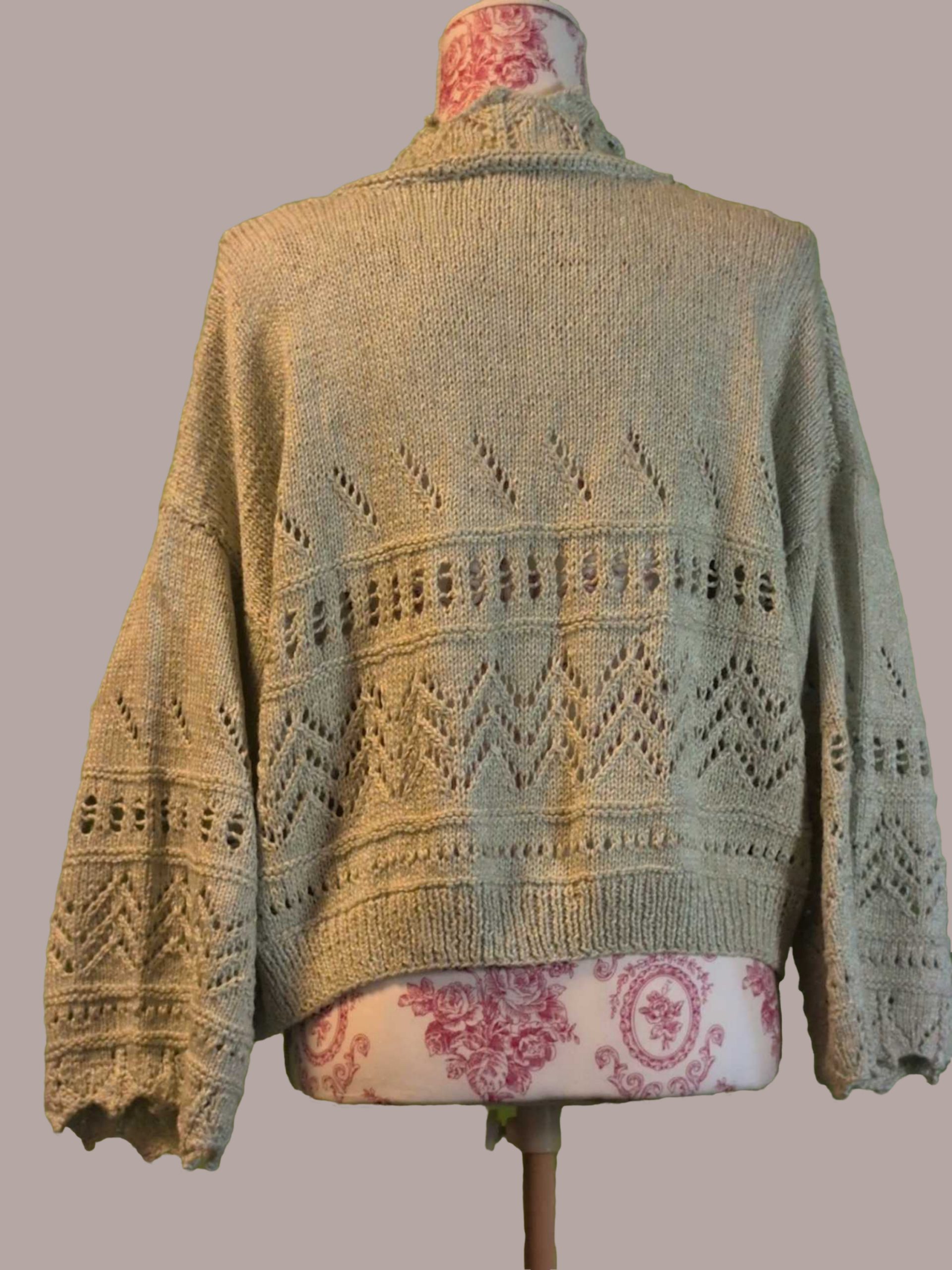 - Strickjacke mit Ajourmuster – handgestrickt aus Lana Grossa Linarte, Größe 40