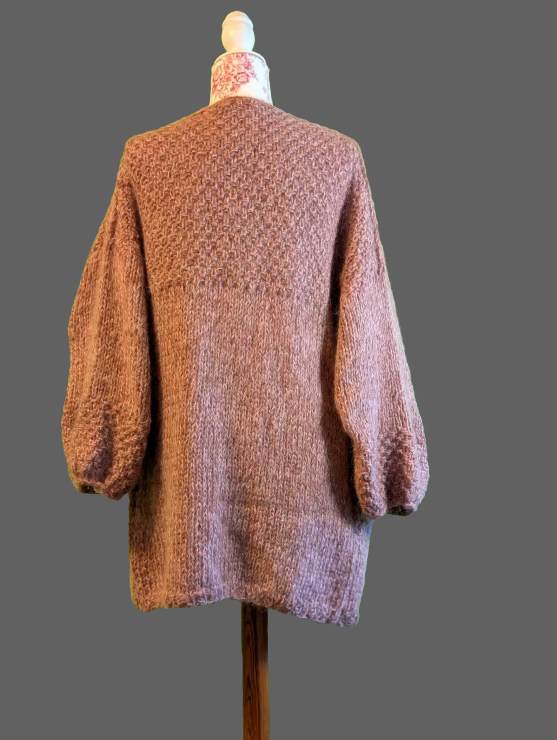 Flauschige Langjacke aus Brigitte No. 2 & 3 – handgestrickt, Größe 40