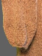 Verschlusslose Langjacke mit Strukturmuster aus Brigitte No. 2 und Brigitte No. 3 von Lana Grossa. Modell aus Filati Classici. Melange-Optik in zartem Rosé-Braun. Größe 40. Einzelstück.